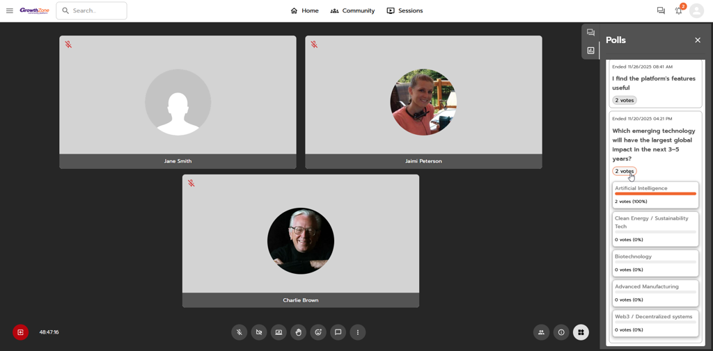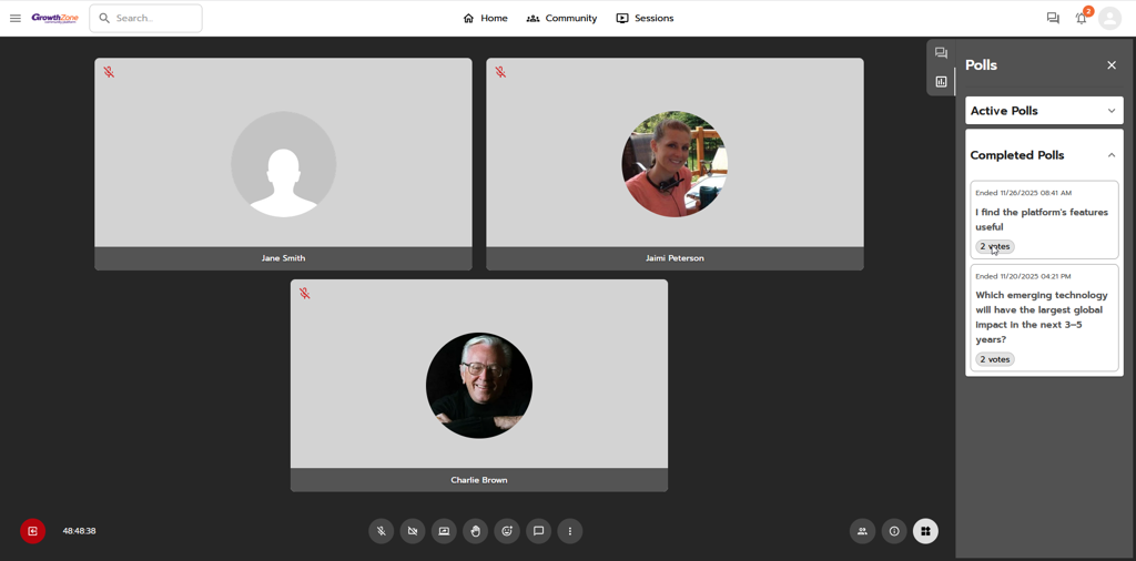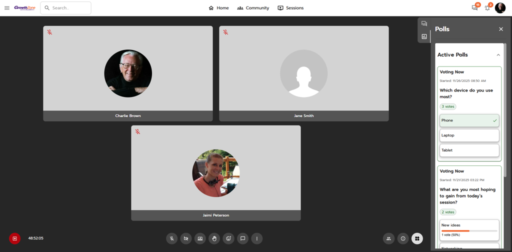 - Polls are only accessible while in a session; there is no archive or reporting at this time.