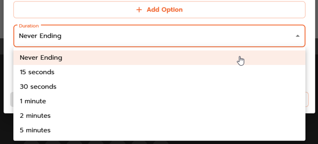 Duration = Choose how long the poll is active for before being automatically closed/ended